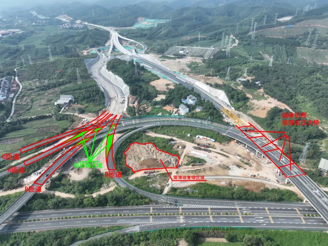 据项目负责人介绍,施工期间需全封闭原互通四条匝道,四个方向交通临时绕行,车流疏导压力大。且要在6天内完成桥梁“拆旧架新”,20天完成枢纽互通改建全流程作业,面临工期紧、任务重等多重困难。