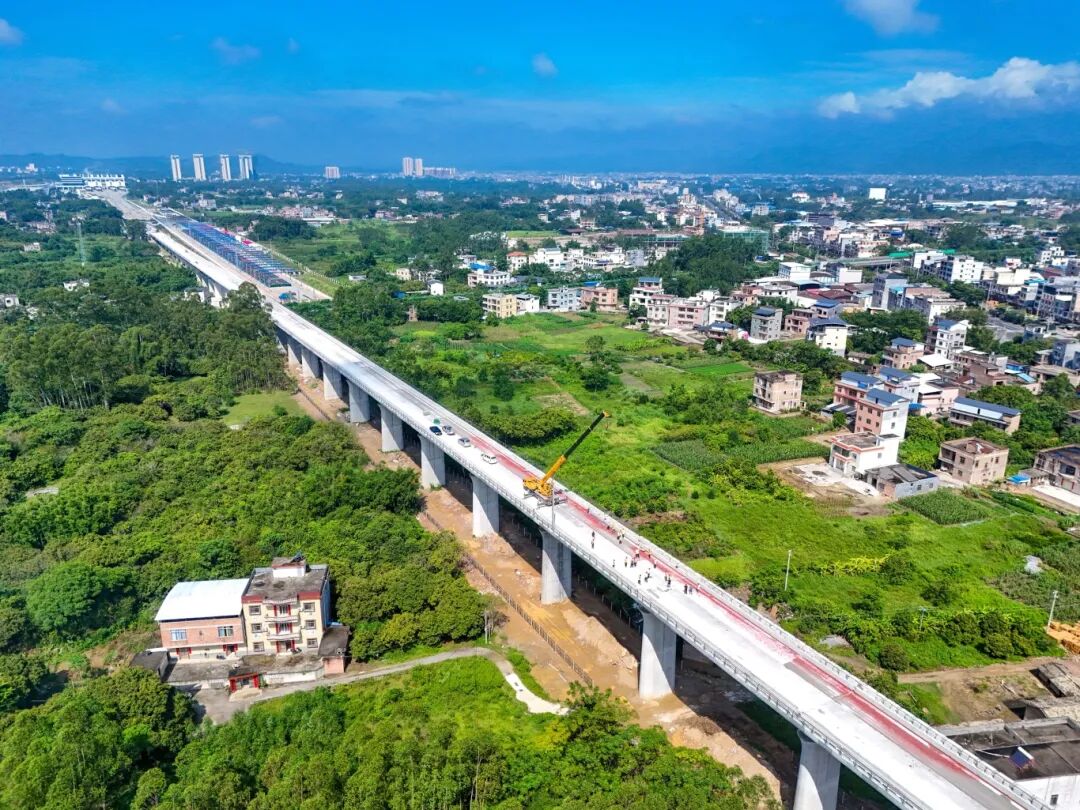 截至目前,南珠高铁玉林北至岑溪东段建设已进入全面冲刺阶段,路基工程完成99.7%、桥梁工程完成96.9%,隧道工程完成99.8%,站后“四电”和站房工程有序推进,无砟轨道工程已启动,全力攻坚通车目标。