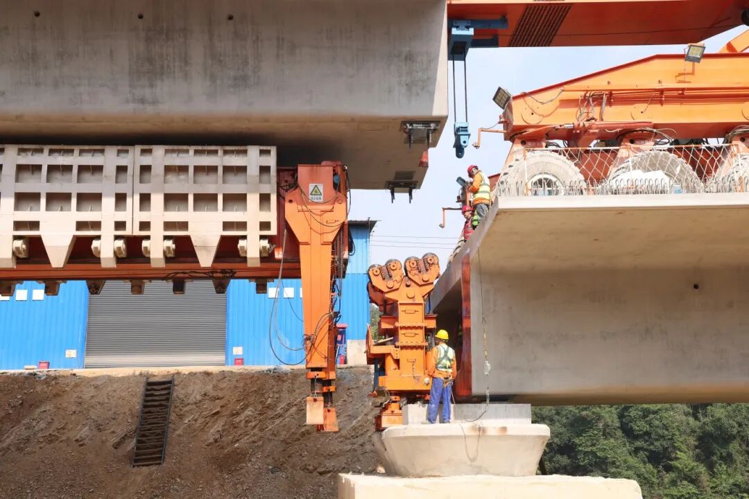 为确保架梁施工顺利推进,项目建设团队提前筹备、紧密部署,制定运梁、架梁施工专项方案,组织人员进行专业技术培训和安全质量交底,加强架梁施工现场安全检查和隐患排查治理,及时消除隐患。在箱梁架设过程中,项目建设团队运用智能化、信息化手段对架梁全过程进行实时监控,确保箱梁运输、吊装、定位等各个环节精准、高效,实现全线架梁任务圆满完成。